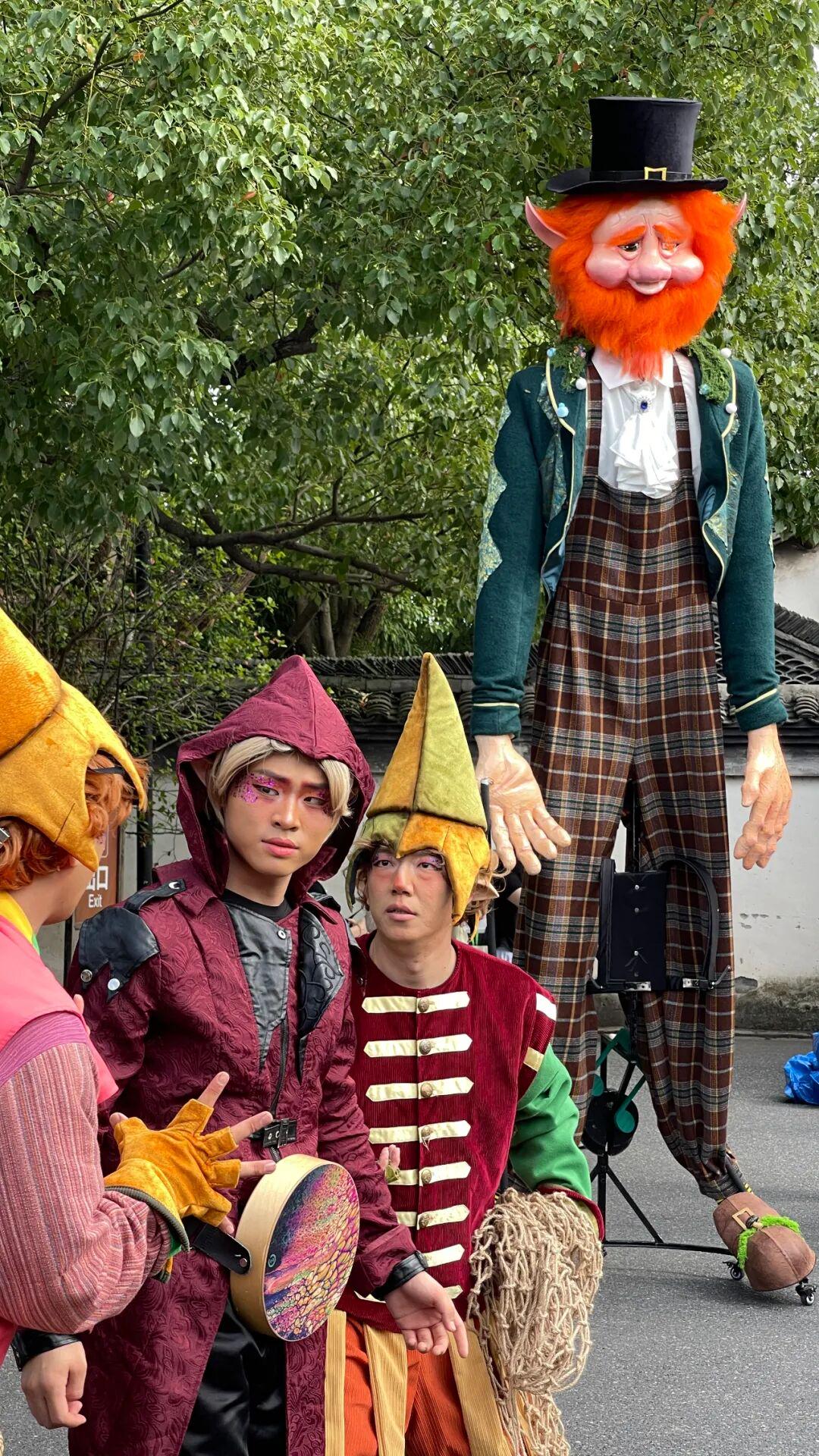 从2019年开始,修壮和团队已经多次参加乌镇戏剧节的嘉年华板块,每次都会带来风格不同的作品。表演《埃尔夫奇境之旅》的“幻境精灵剧团”是独属于今年乌镇戏剧节的限定剧团,对于团队成员来说,木偶表演和许多乐器的演奏都是初次尝试,但为了更好地演出效果,他们愿意去学习和尝试。“木偶道具的制作也是我们需要克服的一道难关。”修壮和我们分享,“开始是找到工厂制作,但做出来后发现质感完全不对,最后在时间非常紧张的情况下,通过各种朋友帮忙,找到了一位中央戏剧学院偶剧系的研究生朋友帮忙修改。包括我们演员造型的服装、配饰、妆容细节,都是大家群策群力,一点点改造和添加。最终演出呈现的丰富效果,是大家共同努力的结果。”