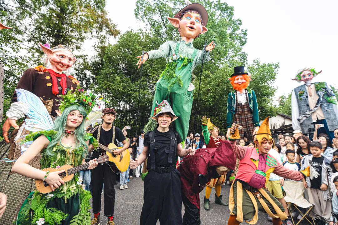 巨大的木偶,森系的装扮,欢快的歌声与热烈的舞蹈……乌镇戏剧节期间走在西栅,如果在街头偶遇《埃尔夫奇境之旅》的表演团队,很难不被他们的表演吸引停留。《埃尔夫奇境之旅》讲述的是一个小精灵和朋友们一起战胜恶魔取得胜利的故事。这不是一个宏大的神话,而是一场关于“信念”的小小旅程。多种木偶表演形式与不同乐器烘托出的浪漫的氛围,令人沉浸。《埃尔夫奇境之旅》的导演、演员修壮向我们介绍,最初创作这个故事,便是希望打造一个充满温情的童话世界,“因为每个人心中都住着一个孩子。”