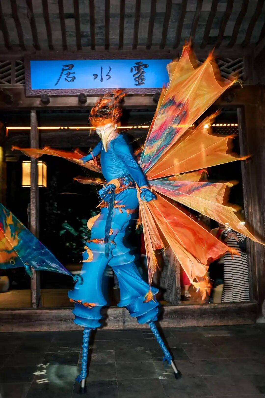 郭东权:交互的视角会非常不一样。在嘉年华的演出中,如果我只是普通站在地上的演员,我交互的是人,但如果站在高跷上,我们可以跟整个乌镇交互,房顶上的瓦片、街上的灯和挂旗、门廊的牌匾和墙上的字、二楼的人……我真的会有一种我在贴近乌镇的感觉。触摸那些建筑,好像看到了这片地方曾经的历史。