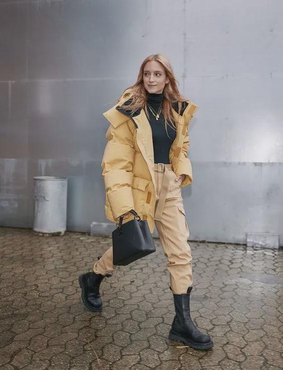 二、羽绒服+马丁靴:酷帅感拉满,走路带风