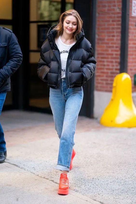 黑色羽绒服+黑色马丁靴:洒脱又温柔黑色羽绒服给人轻松自由的感觉,还透着不经意的洒脱与温柔,搭蓝色运动裤,不经意间流露出精致与大气。踩双黑色马丁靴,瞬间展现超凡气质,走路带风。